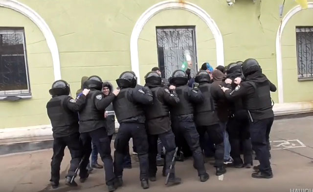 Полицейские отработали три отдельных сценария. По двум из них, массовые беспорядки проходили в зале судебного заседания после вынесения приговора, а по третьему, события происходили возле административного здания Краматорского городского суда.