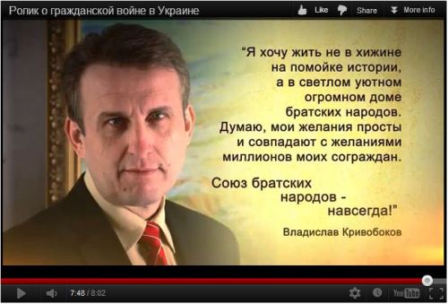 Луганский коммунист Владислав Кривобоков снял нечеловечески смешной и чертовски показательный видеоролик, в котором воплотилась мечта всех сторонников КПУ. В нехитрой шестиминутной поделке показана гражданская война в Украине, якобы начавшаяся в 2015 году из-за того, что Украина не захотела вступить в Евразийский союз. Армия сепаратистов из Донбасса штурмует Киев, правительство сбежало во Львов, НАТО вводит войска, Россия оккупирует Крым. Пыщ-пыщ, пиу-пиу, тра-та-та-та-та!