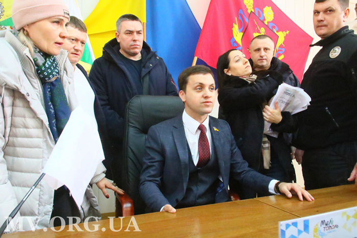 Несмотря на то, что сессия горсовета была намечена на 10 часов утра, "слуга народа" для чего принялся ломиться в зал раньше.