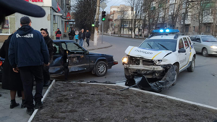 В Славянске вечером 27 марта на пересечении улиц Банковской и Васильевской произошло ДТП с участием автомобиля полиции Renault Duster и частного Volvo,
