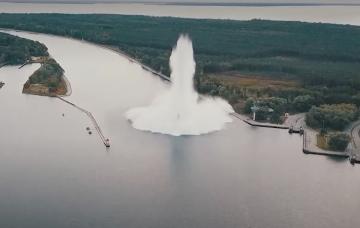 Операцию по обезвреживанию бомбы готовили год. Планировалось, что заряд нейтрализуют путем дефлаграции — горения, не переходящего в детонацию. Однако что-то пошло не так, и бомба взорвалась. К счастью, из прибрежных районов заранее были эвакуированы около 750 человек, а саперы находились на безопасном расстоянии. Хотя нейтрализация прошла и не по плану, взрыв очень впечатляет...