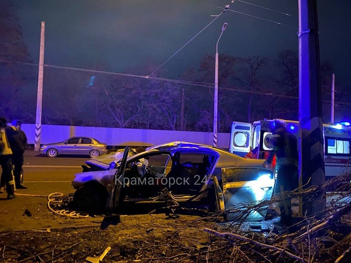 "ДТП с участием Volkswagen Passat B6 произошло около 00.00 часов на перекрестке ул.Южная/О. Тихого, - сообщает ресурс "Краматорск 24". - По информации очевидцев, автомобиль участвовал в гонке и значительно превысил скорость. В результате столкновения врезался в столб и снес дерево.