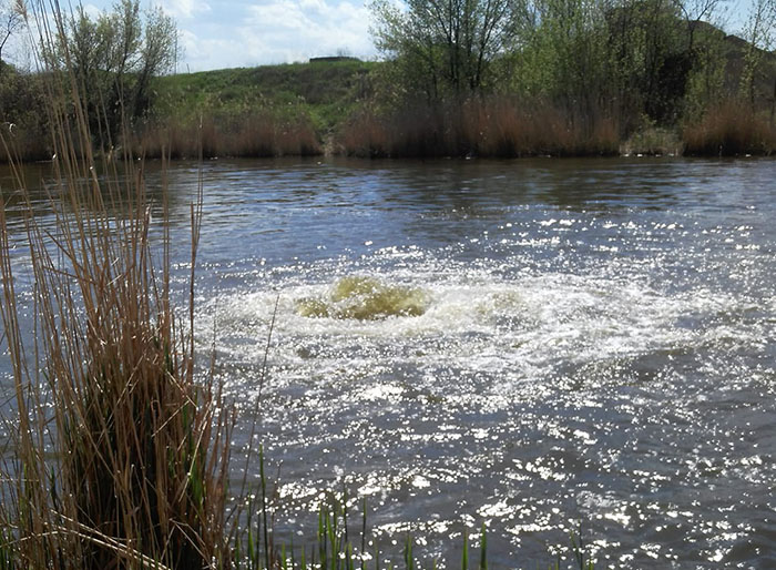 Две недели назад в региональных СМИ появилась информация о странной картине в реке Казенный Торец на территории Славянска: здесь наблюдается странное "бурление" воды. Высказывалось предположение, что причиной тому может служить порыв на водоводе, пролегающем на дне Торца.