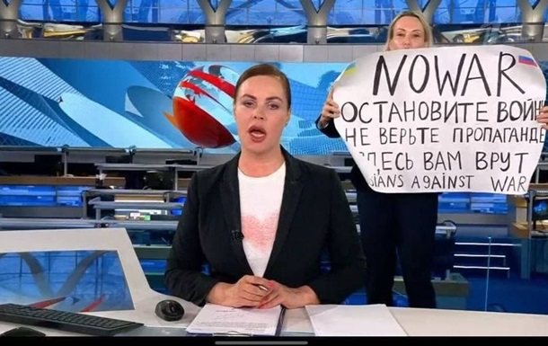 Прямой эфир пропагандистского Первого канала РФ сорвала молодая женщина, которая за спиной ведущей развернула плакат с призывом против российской военной агрессии в Украине.