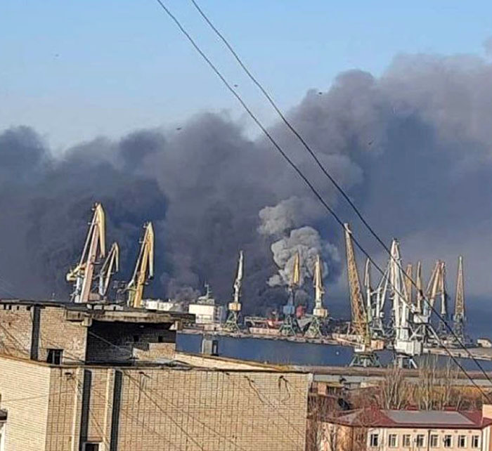 Как пишет Telegram-канал NEXTA Live, в порту Бердянска подбили российские корабли. Один из них утонул, еще два сильно дымят и пытаются скрыться. Уничтожен склад с боеприпасами и топливом.