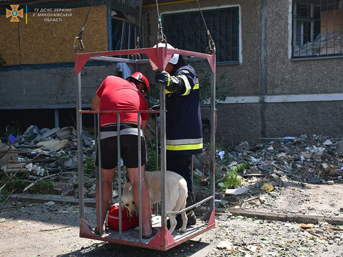 В среду, 29 июня, в Николаеве в результате обстрела пятиэтажного жилого дома в одной из квартир на четвертом этаже заблокированным оказался лабрадор.