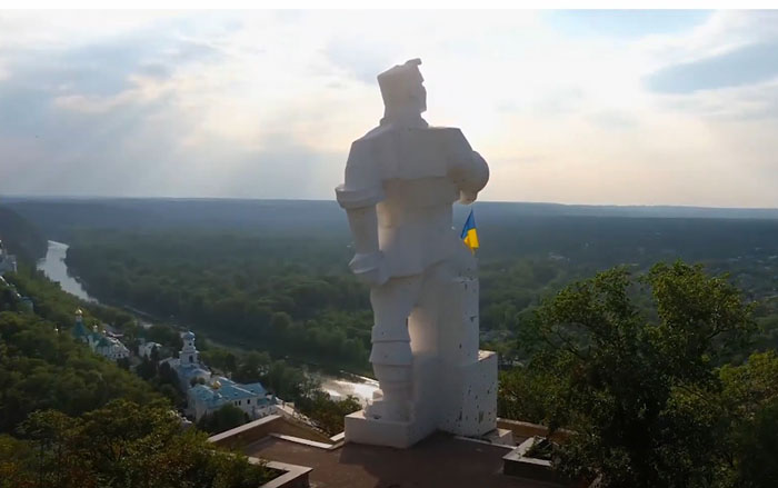"Наші захисники встановили Прапор України на найвищій точці над Святогірськом. Символічно, що пам’ятник проросійському революціонеру став підставкою для нашого символу державного суверенітету", - йдеться у повідомленні.