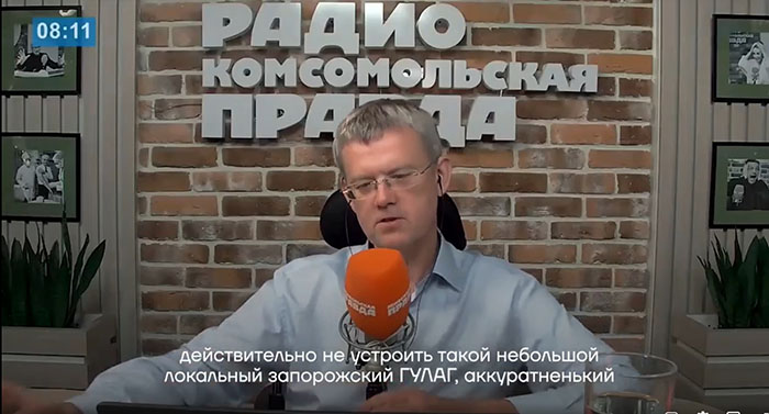 "Тільки вчора російські пропагандисти з "РИА Новости" публікували трешове відео з примусовим виселенням з власного будинку мешканця Запорізької області, який "не підтримує спецоперацію" - тобто окупацію рашистами частини України і ось з дна постукала "Комсомолка", де в ефірі абсолютно серйозно обговорюють розстріли або створення концтаборів (ГУЛАГ) для українських вчителів на окупованих територіях, які відмовляються з 1 вересня викладати в школах під примусом рашистів.