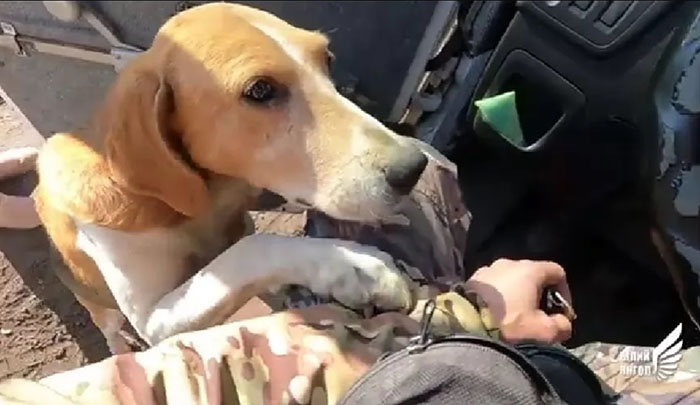 "Пса Бурана "Білі янголи" підібрали у Красногорівці. Собака довго пестився, а потім заліз у поліцейське авто та відмовився виходити", — розповіли в поліції та показали.