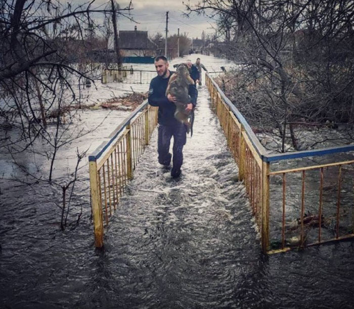 "Перебуваючи у такій складній ситуації, як затоплення, ми допомагали не тільки постраждалим від аварії громадянам, а ще й їхнім чотирилапим улюбленцям, - йдеться у повідомленні. - Небайдужість та співпереживання — це те, що відрізняє нас від ворога.