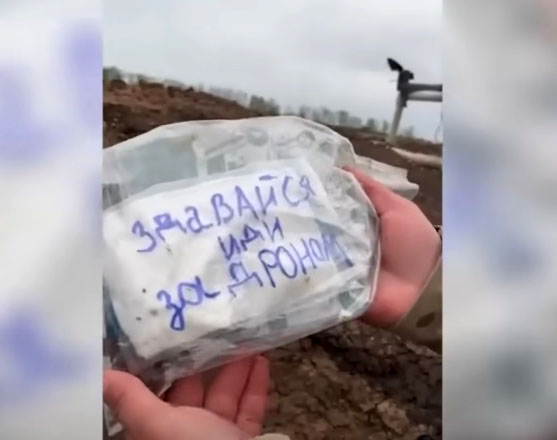 За допомогою дрона наші захисники скинули записку солдатові армії Росії, а потім наочно показували, куди слід йти.