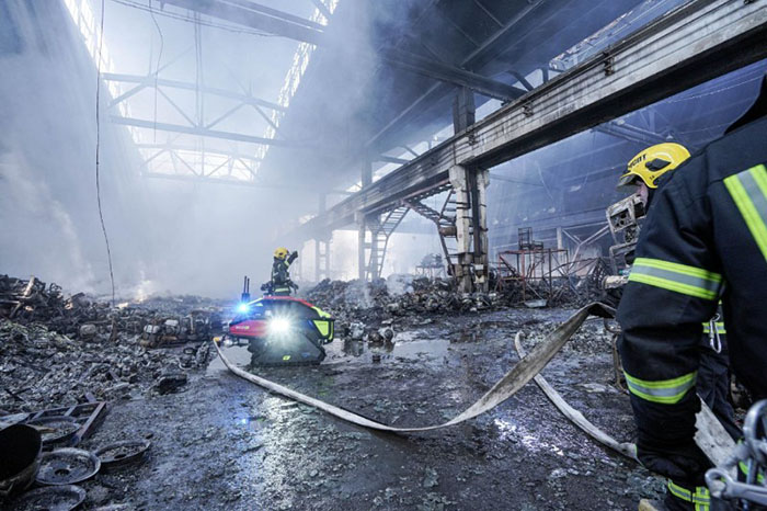 Як повідомляє прес-служба ДСНС, до гасіння було залучено 6 од. техніки, зокрема тактичний робот Magirus Wolf R1.