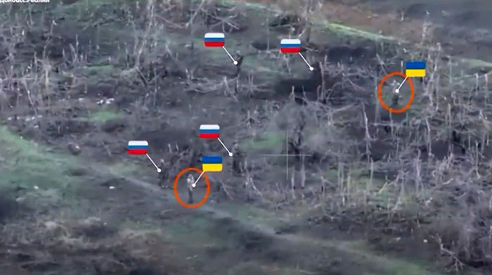 На кадрах можна побачити після того, як розпочався бій, військові рф розпочали відступ. Беззбройних людей послали назад, а потім вистрілили у бік одного з них. На наступному кадрі видно: на землі лежить нерухоме тіло. Однак доля того бійця поки що невідома.