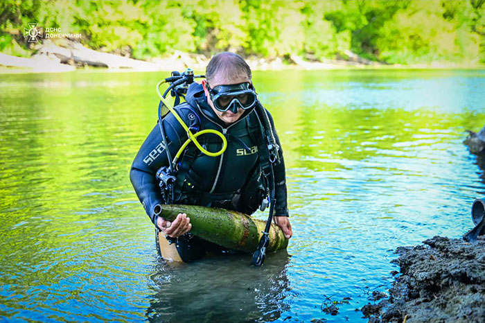 Групою підводного розмінування Служби порятунку проводилося обстеження ділянки річки Сіверський Донець у Краматорському районі. Під час робіт піротехніки виявили 15 артилерійських снарядів калібром 152 мм.