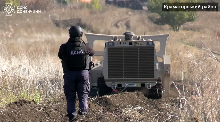 Завдяки використанню сучасної машини механізованого розмінування GSC-200, піротехніки Служби порятунку ефективно очищають території поблизу села Долина, зменшуючи ризики для рятувальників та місцевого населення.
