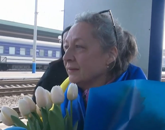На пероні у Києві жінку зустріли її подруги, які також пройшли російський полон. Юлія сиділа разом з Наталею в одній камері.