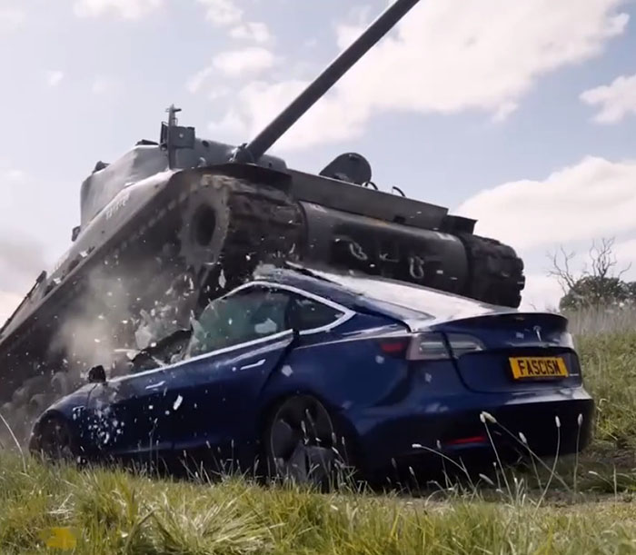 Британський ветеран Другої Світової 98-річний Кен Тернер сів в танк Шерман, на якому воювала його армія, щоб розчавити автомобіль Tesla. Про це йдеться в дописі українського військкора Андрія Цаплієнка на його Telegram-каналі, де він виклав відповідний ролик.
