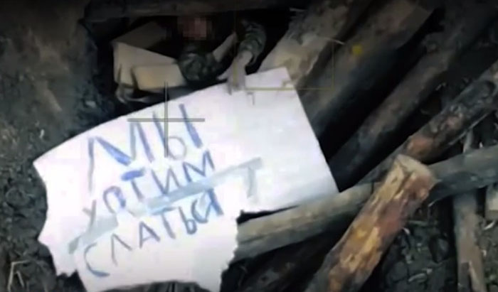 До зруйнованого бліндажу наближався робот, коли противник, аби уникнути підриву, оголосив про свою капітуляцію, продемонструвавши записку перед камерою.