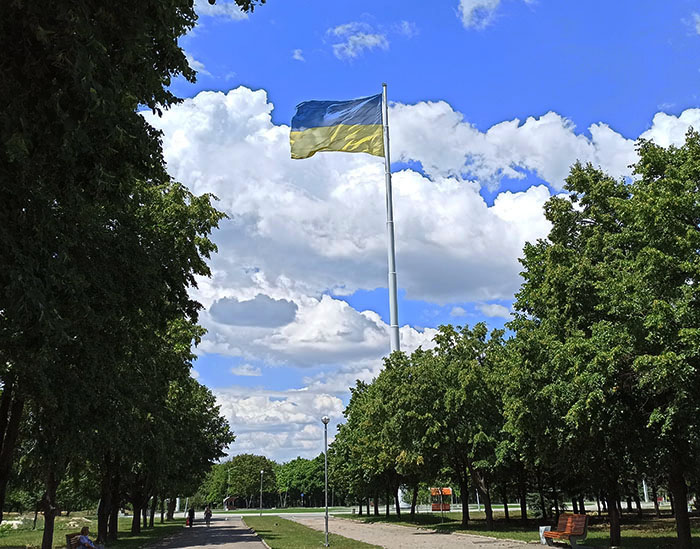 З відео видно, як безпілотник намагається збити державний прапор України. Спроби виявилися безуспішними, ціль залишилася неушкодженою.