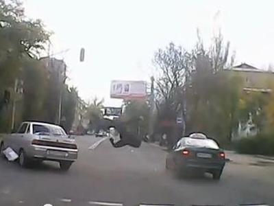 Видеорегистратор одного из пользователей заснял смерть 27-летнего дончанина, перебегавшего дорогу по Университетской. Парня буквально разорвало на части после столкновения с автомобилем таксиста.