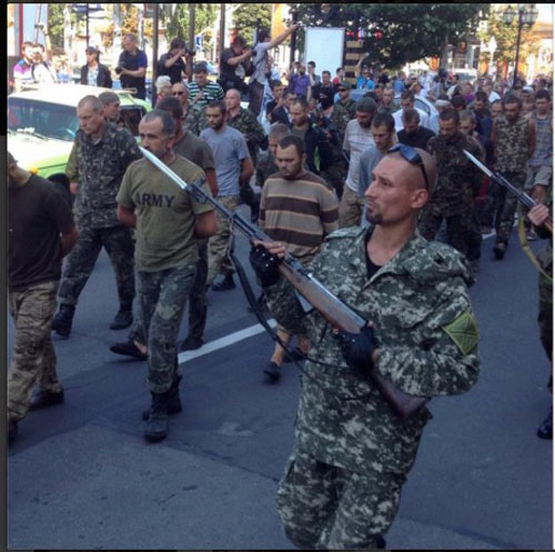 Донецк, 24 августа 2014 года. Выродки из ДНР решили потешить сброд, прогнав в День независимости Украины колонну военнопленных по центральной улице Донецка.