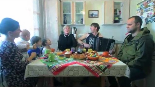 Как выяснилось, на кухне, где поется песня, присутствует также террорист Павел Губарев, причем почему-то в верхней одежде. Правда, сегодняшний внешний его вид очень далек от того добрейшего Деда Мороза, в роли которого нынешний террорист когда-то заколачивал деньги на детских утренниках. Скорее, очень даже наоборот. Под немигающим змеиным взором зомби-Губарева детишки отказываются принимать пищу. А под занавес ролика выясняется, что зомби даже умеет говорить!