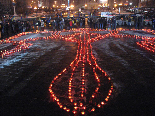Тысячи людей собрались в центре украинской столицы, чтоб вспомнить события годичной давности.