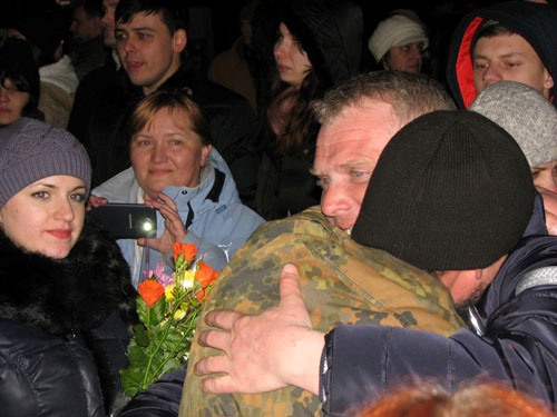 - Герои! Дякуємо, дякуємо! - кричат солдатам встречающие люди.
