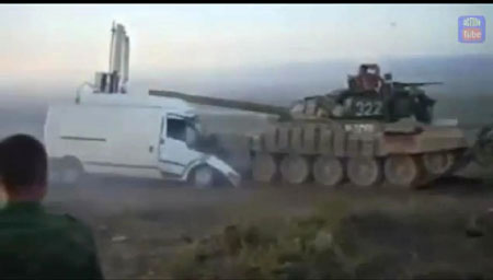 Видео от 21 мая. Вооруженные лица, акценты в речи которых не оставляют сомнений в том, что это представители России, танком Т-72, купленном в ближайшем украинском военторге, ради развлечения крушат микроавтобус. Зачем это делать - на это могут ответить только больные мозги "освободителей".