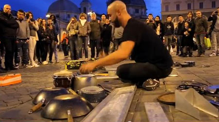 Итальянский барабанщик Дарио Росси личным примером доказывает, что если человек - профессионал, то на отсутствие хороших инструментов для работы он никогда жаловаться не будет.