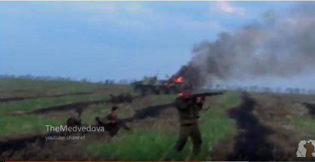 Боевики так называемой "ЛНР" опубликовали 11 августа в Сети собственный вариант знаменитой "психической атаки" белогвардецев-каппелевцев, известную по стародавнему фильму "Чапаев".