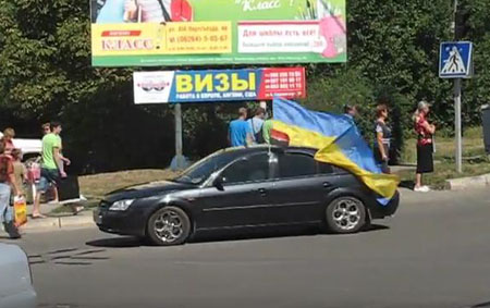Около сотни машин, украшенных национальными флагами страны, проехались в сопровождении автомобилей ГАИ по центру Краматорска и отправились в соседние города.