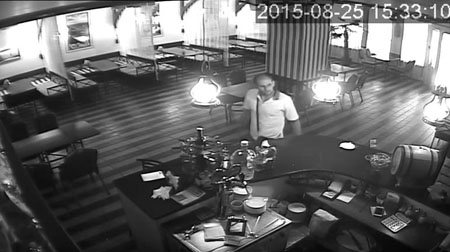 Видеокамеры внешнего и внутреннего наблюдения одного из популярных кафе в Краматорске зафиксировали вора, который, пользуясь краткосрочной отлучкой персонала с рабочих мест, поживился и ретировался с "добычей".