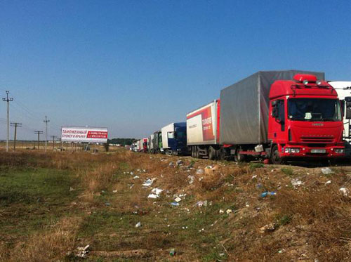 По состоянию на полдень понедельника, 21 сентября, количество грузовых автомобилей на границе Украины и Крыма превышает 200 единиц.
