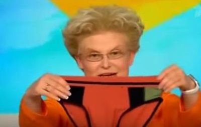 "Берешь мужские трусы – раз, два, – и делаешь из них топ", – рассказала ведущая, после чего в программе показывают, как с помощью ножниц сделать из мужских трусов женский топ.