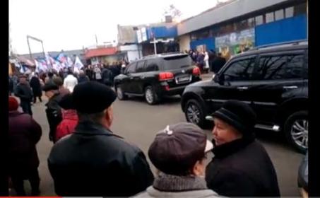 Видео наглядно демонстрирует известную поговорку "Кому война, а кому мать родна". Главарь "республики" прибыл на шикарном кортеже из дорогих внедорожников производства Mercedes, Toyota, Lexus и других недешевых авто, украденных в автосалонах на оккупированной территории Донбасса.