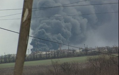 В результате возникло возгорание топлива, в небе видны огромные клубы черного дыма.