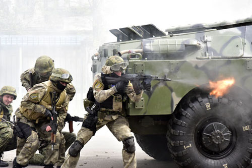 - Уже во второй раз мы проводим учебу такого масштаба по захвату и освобождению здания главка. Почти 2 года тому назад такие события разворачивались в Мариупольском управлении милиции на улице Георгиевский, погибли стражи порядка, - сообщил начальник ГУНП в Донецкой области Вячеслав Аброскин. - В тот период, сотрудники милиции не были готовы противостоять людям с оружием. Они исполняли свои непосредственные обязанности – раскрытие преступлений, охрана общественного правопорядка. Сегодня полицейские отличаются от прежней милиции в разы. Они способны с оружием в руках стать на защиту государства.