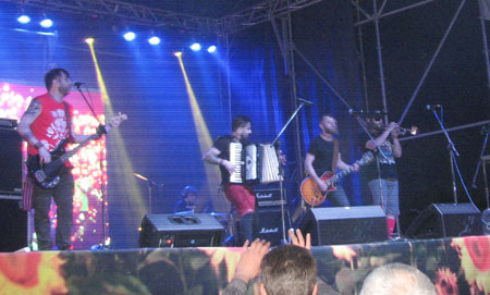 Музыкальный вечер на центральной площади Краматорска 9 мая, где проводился День Европы, закрывала столичная рок-группа Kozak System, часть состава которой когда-то играла в команде "Гайдамаки".
