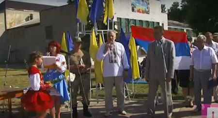 Сегодня, в День Конституции Украины, в Дружковке произошел скандальный инцидент: на торжественном мероприятии с участием губернатора Павла Жебривского, местные проукраинские активисты развернули российский флаг за спиной у мэра города Валерия Гнатенко.