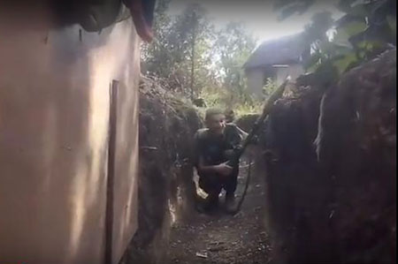 Популярный блогер Денис Казанский разместил в своем "Твиттере" видео, на котором один из террористов снимает боестолкновение в Авдеевке.
