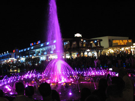 Египет, город Шарм эль Шейх, район Сохо, любимое место туристов со всех концов мира. Гордость вечернего Сохо - танцующий фонтан, где струи воды красочно и органично переплетаются со вспышками пламени огня...