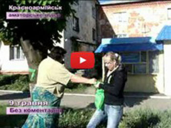 Изумительное видео из Красноармейска появилось сегодня в Интернете: мощного телосложения чиновница атакует гражданку, попытавшуюся развесить в городе зеленые ленточки - символ борьбы против добычи сланцевого газа.