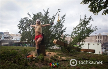 Активистки FEMEN спилили бензопилой поклонный крест в Киеве, выражая таким образом поддержку и уважение своим российским коллегам из группы Pussy riot, - пишет «Сегодня».